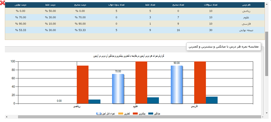 نمایش نتایج آزمون بصورت نمودارهای گرافیکی